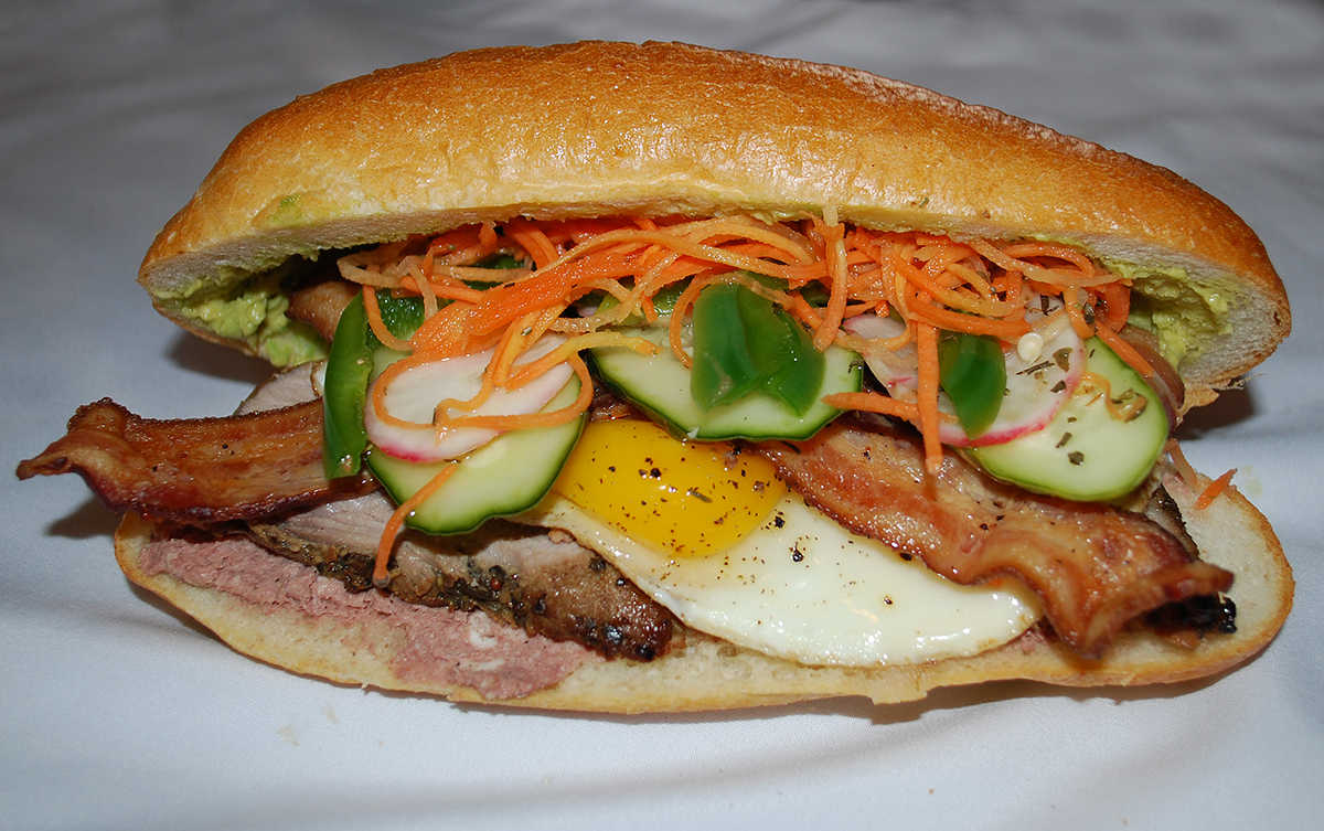 Vietnamese food is, generally, and artful assembly of fresh ingredients that satisfy all ranges of your taste buds. The country was a part of the French colonial empire for decades, and all that traditional franc epicurean excellence remains a key part of Vietnamese culture. Think crusty, flaky baguette combined with umami knockout punches like savory pork sausage and that awesome bitterness that comes from fresh basil and mint. It’s everything you’d want for Sunday Funday Brunch: carbs, pork, more pork, and some endorphin-raising heat. And it’s hard to find a better example of this blissful marriage than in the quintessential Saigon street food, the Banh Mi.